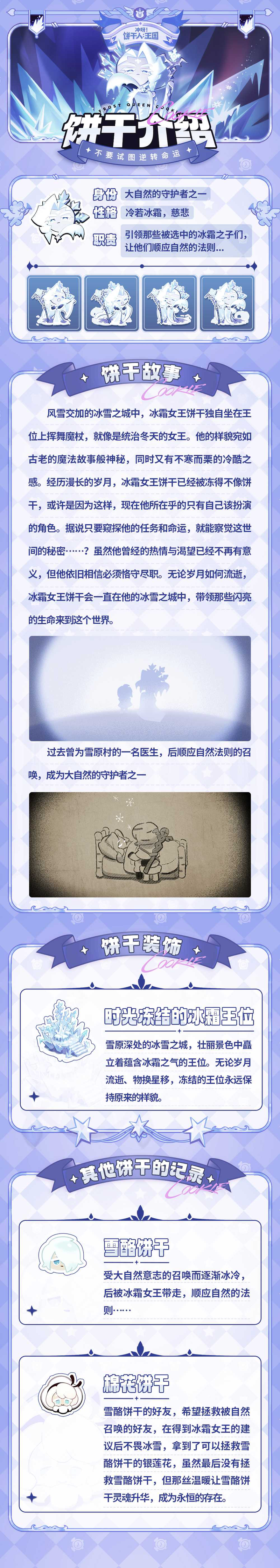 冲呀!饼干人:王国饼干档案 - 冰霜女王饼干「必看」冲 呀 饼干人 王国饼干档案 冰霜女王饼干如下 CV 陈彦亦 战斗类型 魔 法型 作战位置 中排 不要试图逆转命运 风雪交加的冰雪之城中 冰霜女王饼干独自坐在王位上挥舞魔杖 就像是统...
