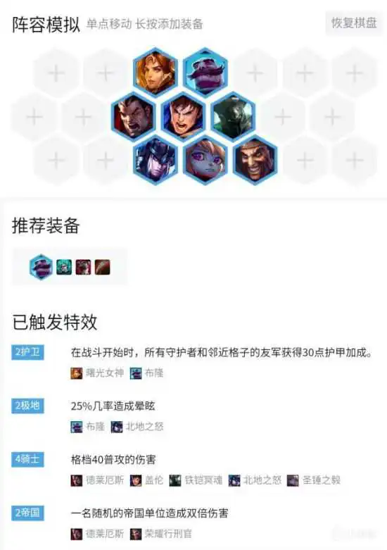 《云顶之弈》布隆主C六护卫超肉套路教学云顶之弈 中的护卫羁绊可以增加棋子的护甲 所以这个套路是一种很肉的阵容 请看下面由 髑髅白发 带来的 云顶之弈 布隆主 C 六护卫超肉套路教学 希望对大家有用 套路思路 1 护卫 邻近格子友军护甲...