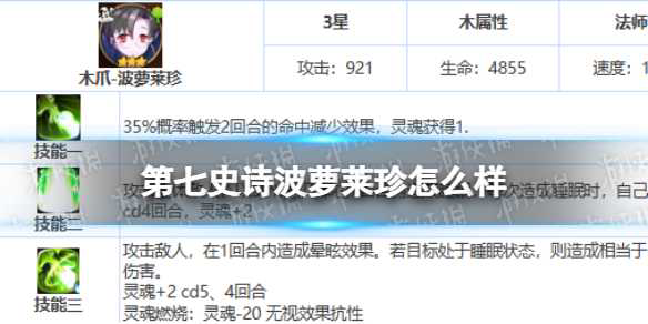 《第七史诗》波萝莱珍怎么样 三星英雄波萝莱珍介绍第七史诗波萝莱珍怎么样 波萝莱珍是游戏中的三星角色 不少小伙伴想了解该角色 下面小编为大大家带来了三星英雄波萝莱珍的介绍 一起来看看吧 第七史诗波萝莱珍怎么样 英雄属性 点开可看大图 英...
