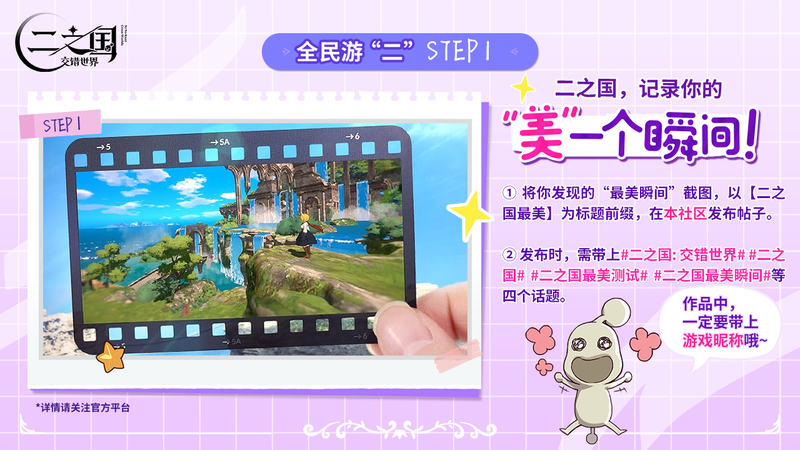 二之国:交错世界【福利活动】全民游“二”STEP1,记录你的最美瞬间~「别错过」二之国 交错世界 福利活动 全民游 二 STEP1 记录你的最美瞬间 如下 二之国 交错世界 最美测试 正式开启啦 为了做到美的名副其实 在崭新的奇幻异世...