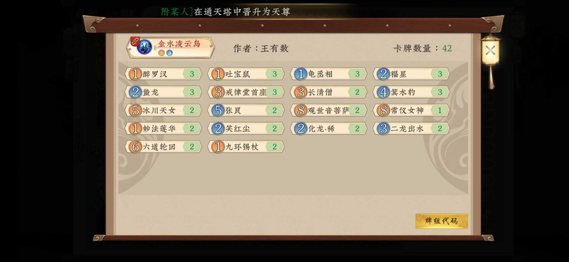 五行师卡组推荐(T1)五行师卡组推荐 T1 如下 水土高修 构筑思路来源于零凌大佬的三系压修场面打法 去掉了拖节奏的乌龟灵猫 效果出奇的好 无脑铺场面就能乱杀 注意好跳费时机就行 酒剑留着关键时候跳汉中离白起 团子很重要 四费也可以不...