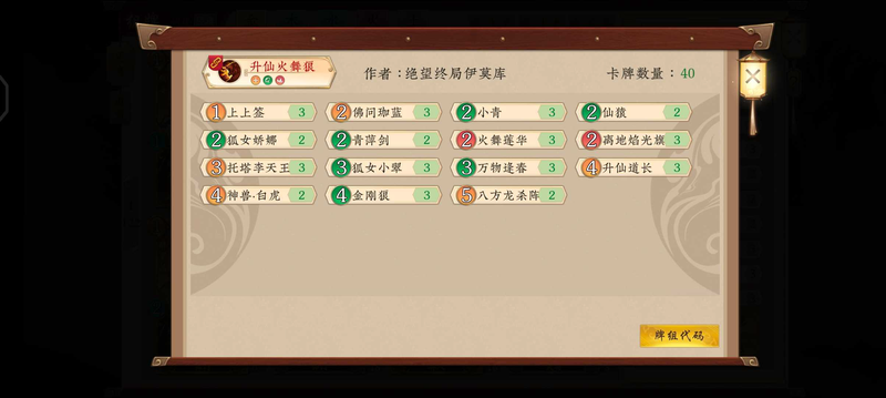 五行师五行师卡组速报第二十三期五行师五行师卡组速报第二十三期如下 娱乐卡组 较弱卡组 较强卡组 1 灵山破戒祖龙信 没有带土系牌却是靠土系牌赢的灵山 otk 用祖龙选因缘信 破戒僧 分身 铁扇增伤 七仙女减伤 然后出覆海大圣即可打出 ...