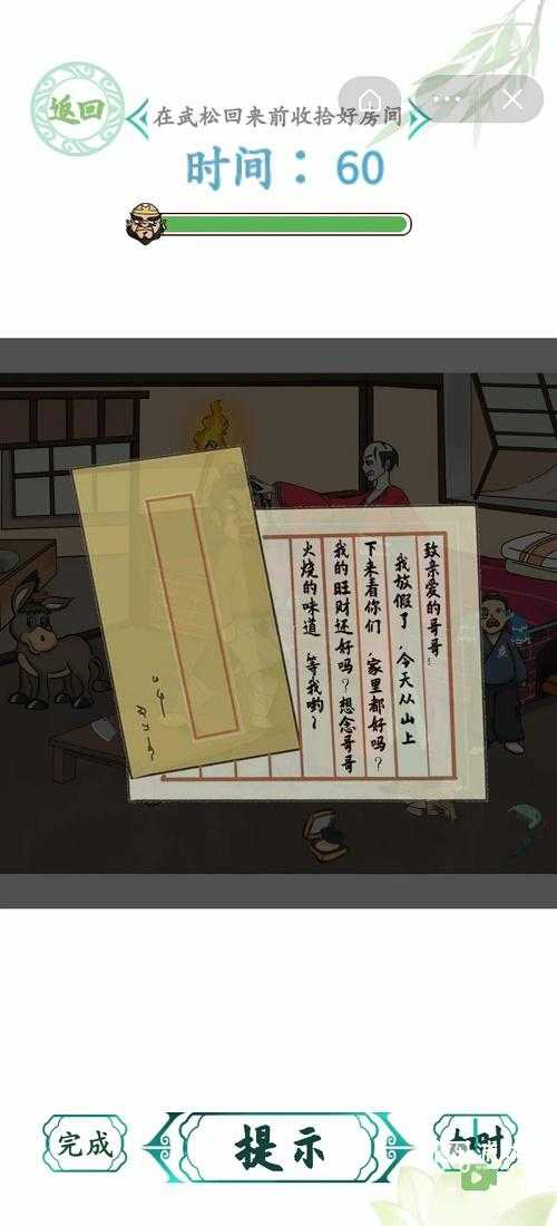 汉字找茬王恩爱夫妻攻略「别错过」汉字找茬王恩爱夫妻关卡需要玩家在规定的时间里在武松回来前收拾好房间 游戏宝小编带来汉字找茬王恩爱夫妻攻略 一起来看看吧 汉字找茬王恩爱夫妻攻略 1 双击大郎和金莲 2 拖动粉底给大郎 3 拖动梳子给大郎...