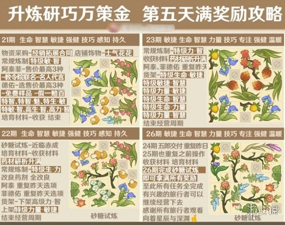 原神升炼研巧万策金第三阶段市场情报一览原神中升炼研巧万策金已经开启了第三阶段的市场情报 由于很多小伙伴不知道具体怎么研制 下面小编给大家带来了详细的升炼研巧万策金 21 26 周期市场情报分享 感兴趣的小伙伴不要错过了 攻略大全 原神...