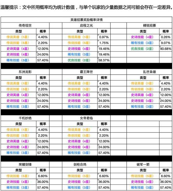 重返帝国卡池抽奖概率一览[亲测有效]在重返帝国中 高等级武将和技能需要玩家通过抽奖获得 很多玩家都想要知道重返帝国卡池抽奖概率是多少 游戏宝小编为大家带来重返帝国卡池抽奖概率一览 重返帝国卡池抽奖概率一览 一 英雄招募奖励概率详情 传...
