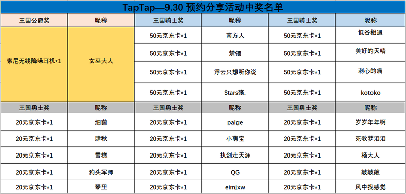 潮灵王国:起源【已开奖】-(国庆有奖)预约分享,赢索尼无线耳机等千元大礼「必看」潮灵王国 起源 已开奖 国庆有奖 预约分享 赢索尼无线 耳机等千元大礼如下 各位领主大人们好吖 感谢大家对本次预约分享活动的踊跃支持与参与 经过苏拉的仔细...