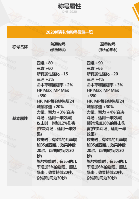 DNF2020春节套称号属性 至尊称号属性一览DNF2020 春节套中的称号是非常重要的 本次就为大家带来了 DNF2020 春节套称号属性 包括至尊称号属性一览 想了解的朋友可以参考 希望能帮到大家