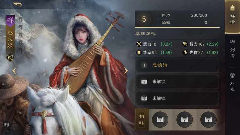 三国:谋定天下蔡文姬介绍及配将攻略【群雄橙将】【三国:谋定天下】[玩转游戏]三国 谋定天下蔡文姬介绍及配将攻略 群雄橙将 三国 谋定天下 如下 大家好 本期奉孝 将为大家带来蔡文姬的武将介绍及其阵容搭配推荐 一 武将基础信息 品质 橙...