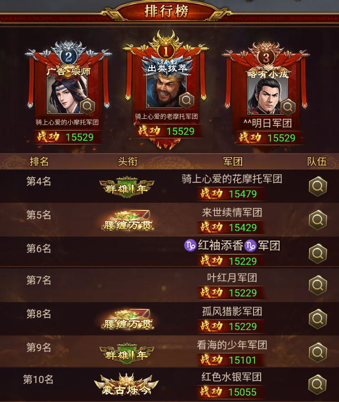 群雄时代荣誉殿堂 - 再创新高!江夏之战 勇士排行榜「必看」群雄时代 荣誉殿堂 再创新高 江夏之战 勇士排行榜如下 大大们下午好 本次战役 江夏之战 落下了帷幕 一起来膜拜下本期榜上有名的大佬们吧 在本期江夏之战中荣登 TOP10 的...