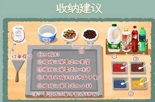 收纳物语酒酿酸奶攻略[玩转游戏]收纳物语酒酿酸奶怎么过 酒酿酸奶这一关需要玩家制作一杯酸奶后才能通关 游戏宝小编带来收纳物语酒酿酸奶攻略 希望可以帮到大家 收纳物语酒酿酸奶攻略 1 加酸奶 2 根据订单要求加果酱 3 根据订单要求加味...