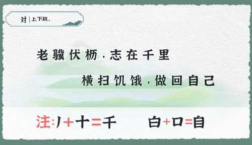 收纳物语字字诸饥攻略收纳物语字字诸饥怎么过 这一关是要对上下联 很多玩家不知道怎么对 游戏宝小编带来收纳物语字字诸饥攻略 一起来看看吧 收纳物语字字诸饥攻略 1 这一关只需要把上下联的词语对出来就可以过关了 2 上联是老骥伏枥 志在千...
