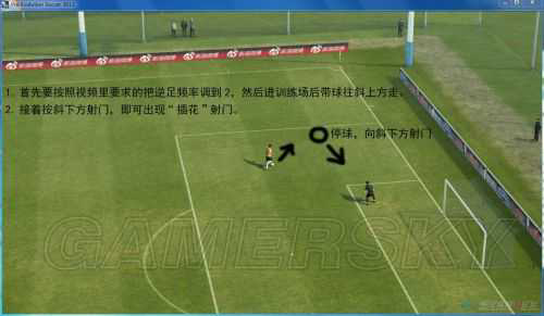 《实况足球2013》-插花-射门视频教程插花 射门 插花 假射 而 插花 射门的假射 就是在射门的一瞬间按一下 X S 短传键就可以 插花 加假射
