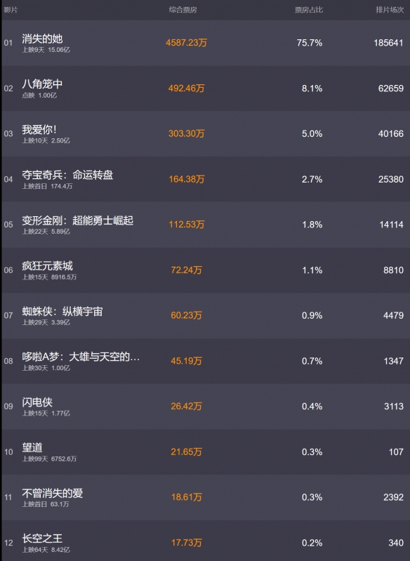 票房电影票房排行榜6月29日 2023.6.29消失的她等电影票房排行榜[亲测有效]