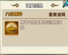 花千骨八卦战阵花千 骨八卦战阵如下 哈喽各位上仙小伙伴们大家好呀 今天我们一起来看看八卦战阵 八卦战阵升星材料为八卦经 玄武印 青龙印 白虎印 朱雀印 升星主材料八卦经 可在战阵界面将此道具启动 增强全体伙伴的能力消耗八卦精粹 300...