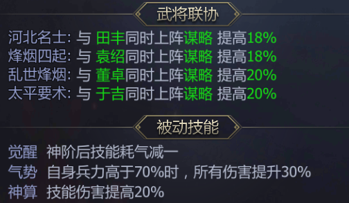 九州三国志S武将推荐5-群【张角】[玩转游戏]九州三国 志 S 武将推荐 5 群 张角 如下 群后排必带输出武将 人称小诸葛 有专属加成 30 被动气势和神算技能伤害加成 50 输出非常厉害 技能 5 气 觉醒 后 4 气 需要搭配带...