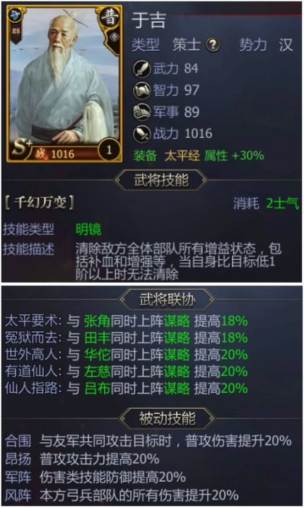 九州三国志S+小众武将推荐—群【于吉】_1「超实用」九州三国 志 S 小众武将推荐 群 于吉 如下 大众搭配群的顶配阵容 吕布 左慈 董卓 貂蝉 华佗 其实顶配到后期华佗回血技能用不上的 不如搭配于吉技能 明镜 2 气瞬间清楚敌方所有...
