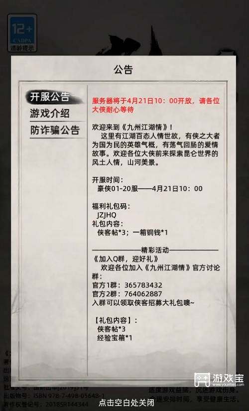 九州江湖情礼包码大全最新2023九州江湖情礼包码可以领取侠客帖和各种经验宝箱 可以让玩家获得更多的侠客 游戏宝小编带来九州江湖情礼包码大全最新 2023 一起来看看吧 九州江湖情礼包码大全最新 2023 福利礼包码 JZJHQ 礼包内...