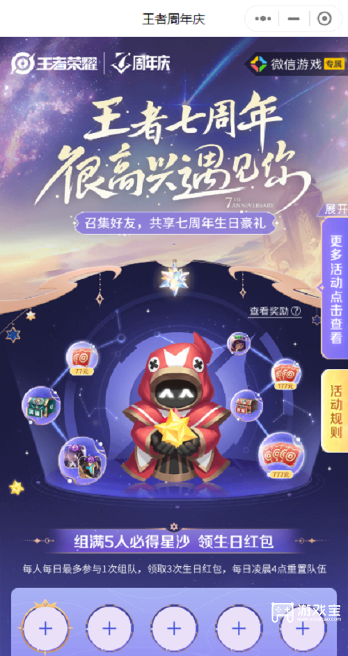 王者荣耀七周年庆组队领好礼活动链接入口分享王者荣耀端推出了一个七周年组队领好礼的活动 很多玩家不知道链接是多少怎么参与 游戏宝小编带来王者荣耀七周年庆组队领好礼活动链接入口分享 一起来看看吧 王者荣耀七周年庆组队领好礼活动链接入口分享...