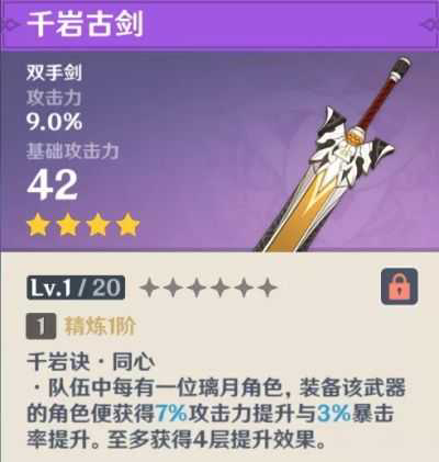 原神千岩古剑适合谁用「必看」原神千岩古剑是一把四星级别单手剑武器 有着不错的攻击力加成等属性 那么原神千岩古剑适合谁用 游戏宝小编为您带来原神千岩古剑适合角色介绍 原神千岩古剑适合谁用 获取推荐 精炼需求 副属性为攻击力百分比的双手剑...