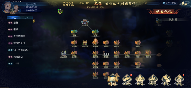 灵历十八年不语第三段记忆攻略「别错过」灵历十八年不语第三段记忆攻略如下 枫林山路左侧中间的枫树 林开启 进入记忆老祖墓祭奠解锁线 索 1 去林中祠堂解锁线索 2 追击黑衣人 到后山悬崖 打败黑衣人后解锁线索 4 回到祠堂看望圆空解锁线...