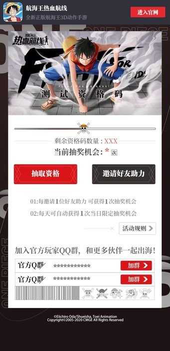 航海王热血航线测试资格怎么获得_测试资格获取攻略航海王热血航线测试资格怎么获得 航海王热血航线测试通道即将就要开启啦 很多玩家都想知道怎么才能获得游戏的测试资格 看完下面小编为大家带来的这篇航海王热血航线测试资格获取攻略 希望能够对大...