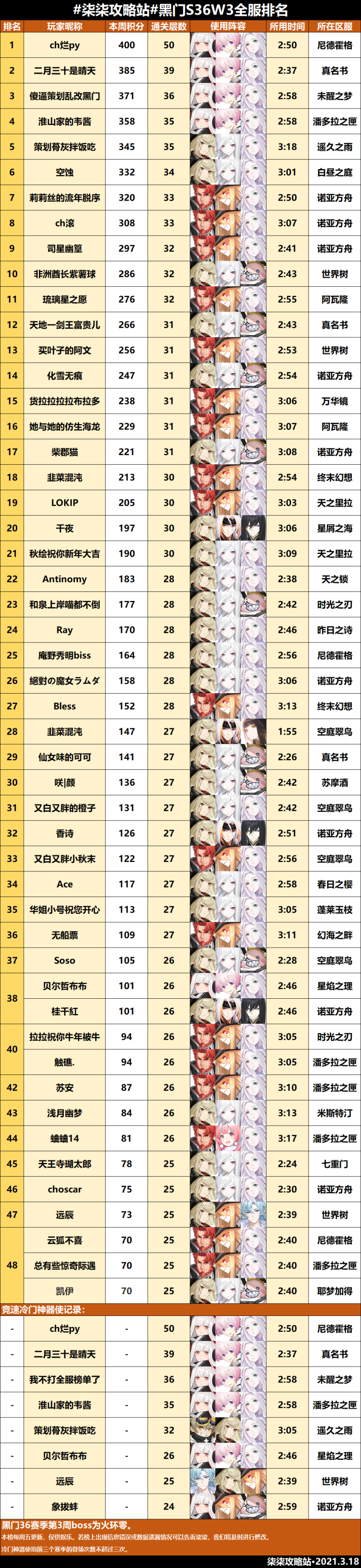 永远的7日之都黑门试炼第36赛季第3周全服排行榜永远的 7 日 之都黑 门试炼第 36 赛季第 3 周全服排行榜如下 以上就是永远的 7 日之都黑门试炼第 36 赛季第 3 周全服排行榜相关内容