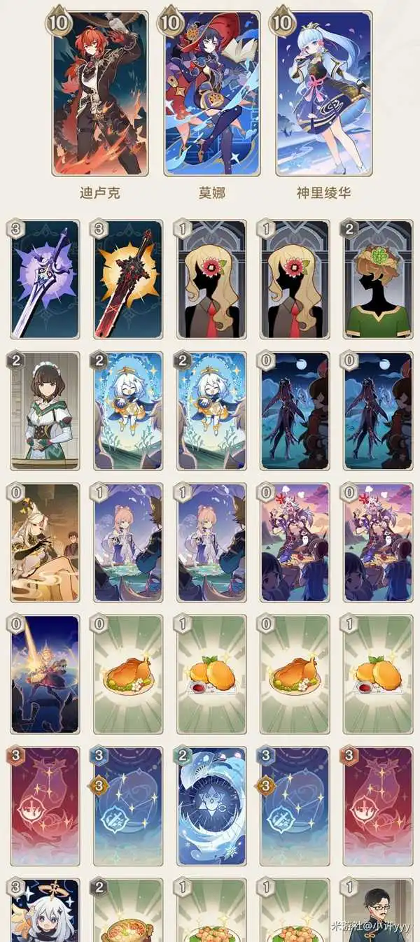 迪卢克起手,e一下,切莫娜,e或普通攻击一下,有能力切绫华,结束回合召唤物打一个水元素伤害,绫华e冻结(注意看打牌的时候有没有地脉异常,会不会给双方出战角色附上元素只在npc挑战时会有)