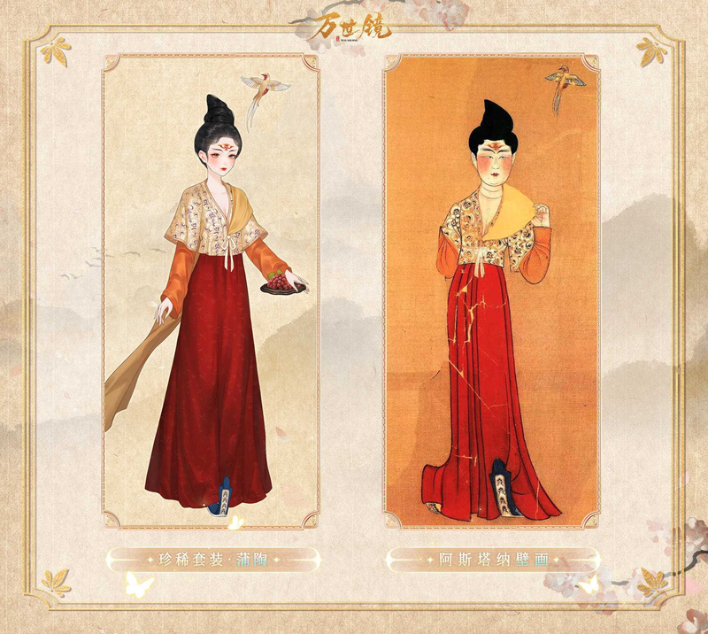万世镜华服赏析 - 阿斯塔纳壁画复原套装——蒲陶_1[玩转游戏]万世镜 华服赏析 阿斯塔纳壁画复原套装 蒲陶如下 吐鲁番阿斯塔纳墓穴出土了诸多艺术珍品 其中有不少描绘了民间生活的画作 这些画作反映了从晋代到唐代数百年间的居民生活 在其...
