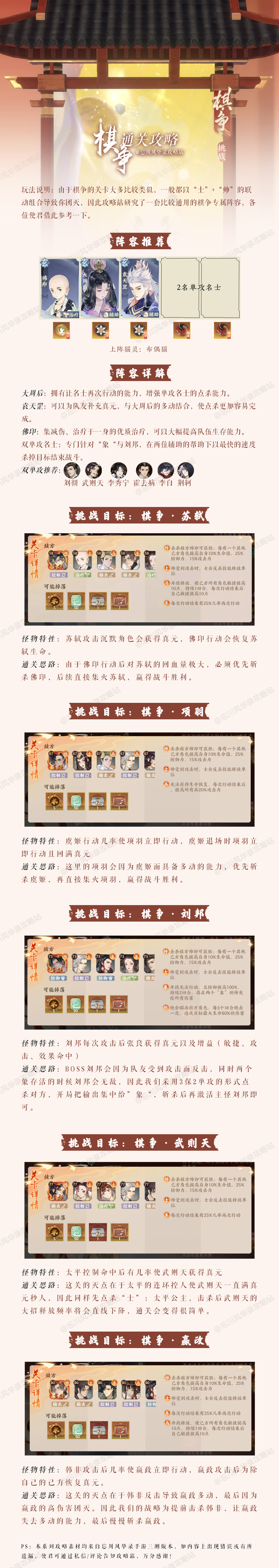 忘川风华录《棋争玩法阵容推荐:上元终测》忘川风华录 棋争玩法阵容推荐 上元终测 如下 由于棋争的关卡大多比较类似 一般都以 士 帅 的联动组合导致你团灭 因此攻略站研究了一套比较通用的棋争专属阵容 各位使君借此参考一下 以上就是忘川风...