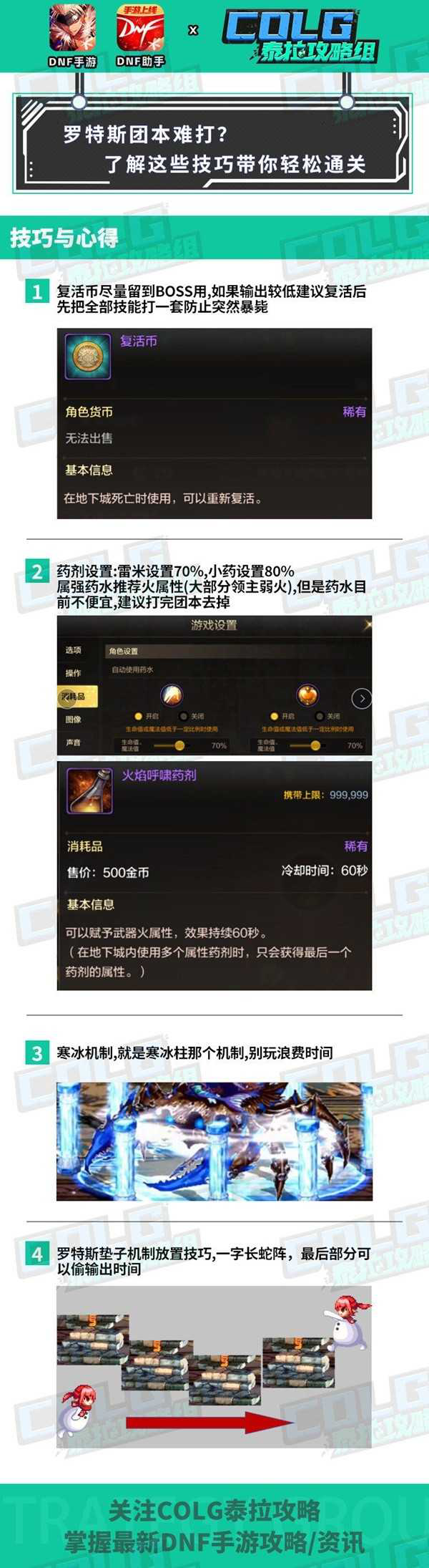 《地下城与勇士手游(DNF手游)》中打罗特斯普通团本有哪些技巧呢?快来看看由“COLG泰拉攻略组”为大家带来的《地下城与勇士手游(DNF手游)》罗特斯普通团本打法分享,希望可以帮助到大家。