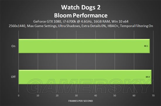 性能影响:当我们开启了光溢出效果后,帧数损失不到1帧,但画面华丽的程度却提高不少,建议开启。