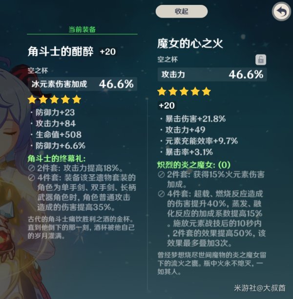 副属性接近完美的攻击杯,和垃到家的冰伤杯,伤害可是有接近3000的差距,伤害越高差距越大,攻击杯弱爆了。