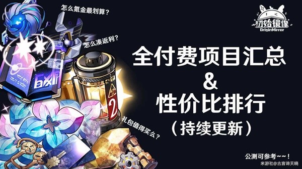 本攻略包含内购礼包、充值、大小月卡、买体力等各项目的性价比计算,以省流结论+简表的形式呈现,大家可以选择感兴趣的内容阅读。汇总表以价格由低到高的顺序排列,排行表以性价比由高到低的顺序排列,具体见表末和文末。