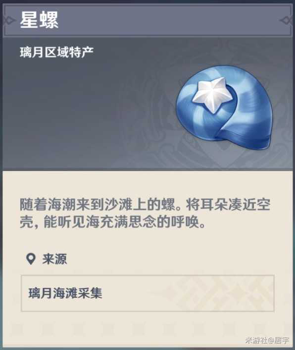 星螺是《原神》达达利亚、夜兰和嘉明的突破材料,但是很多玩家不知道星螺位置在哪,下面请看“居宇”带来的《原神》星螺分布图,星螺采集位置,希望能够帮助大家。