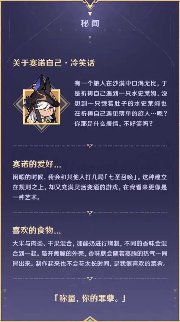 旅行者们好,今天将为大家介绍的角色是赛诺。