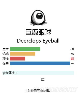 巨鹿,一般情况下是我们第一个打的BOSS,每个季节BOSS的掉落物都可以做两种道具,而巨鹿眼球可以制造的物品,包括: