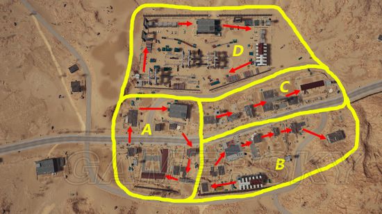 地图改版后的现制高点依然可以俯瞰全城,死死卡住地方转移毕竟的几条路线,非常适合负责指挥的队友侦察或架枪。这样即便有敌人和我们争夺此处也只是为我们送快递介绍我们揽件的流程罢了。如果没有敌人同我们一起来此处发育的发,组排四人分工如下,我将城区按主干公路和体量划分成四个区域,可以大大提高我们搜索的效率,搜索完还有多余的时间则可以从我们四周的野区开始揽件,这里记住一定要驾车前往哦。