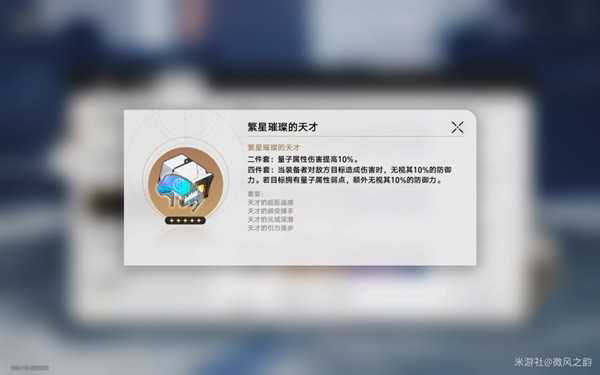 选择量子四件套+繁星二件套,不过该套装思路最好是在有镜流的专属光锥的情况下选择。因为上面也提到了镜流的光锥可以无视部分防御力,所以配合上量子套的无视防御力,加上后面队伍带银狼或佩拉来降低敌方防御力。从而增加自己队伍的输出。
