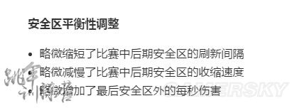 ·略微减慢了比赛中后期安全区的收缩速度