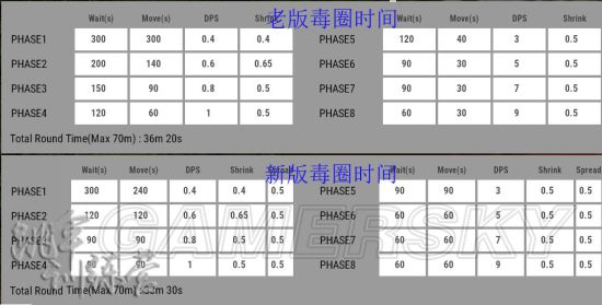 ·首先毒圈的基础伤害是没有变的,而且依旧是连续吃毒时间越长,越到后面的圈伤害会奇高无比,主要改变的还是圈的等待时间及收缩时间。