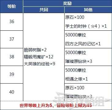 突破任务奖励:世界等级4、冒险等阶上限40、原石×100、相遇之缘×2、10000摩拉