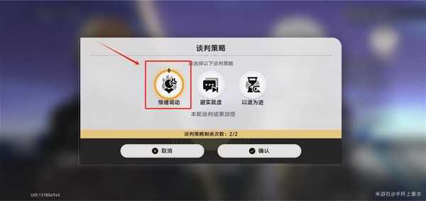 如果第二回合没有选择情绪调度,第三回合:选择【太卜符玄目击了全过程】,即可完成谈判