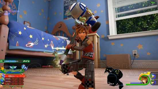 战斗中只要输入方向键左右,就可以切换不同的钥剑。在游戏中准备了以《怪兽电力公司》、《玩具总动员》、《魔发奇缘》等作品为主题的钥剑。