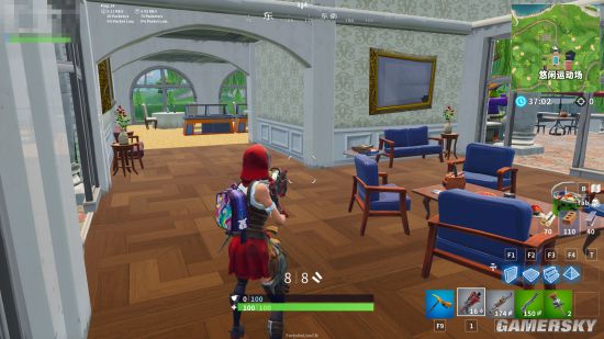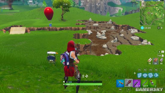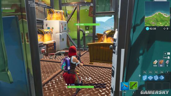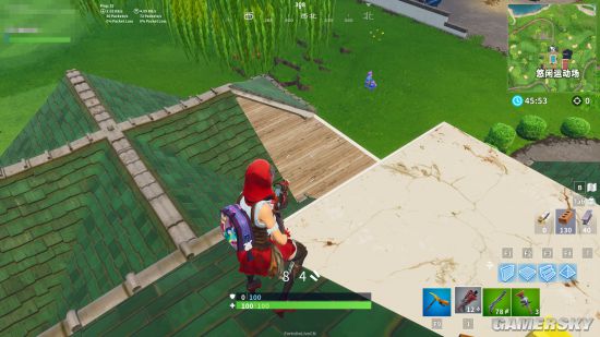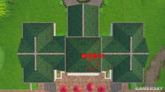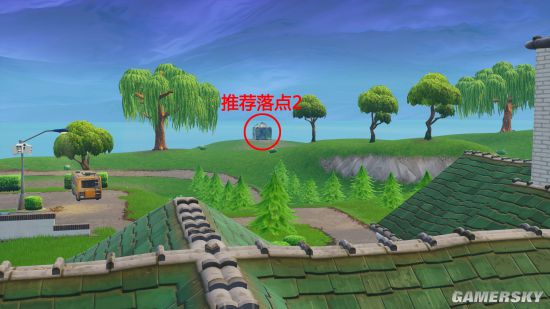 这里是整个运动场的最高点,落地后敲开脚底下的板子,就能看到一个资源刷新点和一个宝箱刷新点,很多人都想落这里的情况下,拼的就是谁能最先落地并拿到武器了。