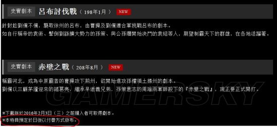 再说一说本作剧本的可玩性保障, 光荣终于也开始在三国志卖DLC了!!! 这样应该会有更多新的剧本可以玩, 玩家有福了!!!! 看下图