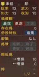 然而就怕货比货,再看看当时已经在河北慢慢壮大的袁绍,不愧是四世三公,门生遍地。存在感把曹老板爆出翔来了。 不过,别笑的太早,再看亲近感,对曹老板又妒又恨的亲近感-31,而曹老板只是轻轻一笑,根本不把袁绍放在心上,亲近感是-13. 正所谓我把你当宿敌你却把我当跟葱,看来人妻曹那时候已经知道袁绍成不了事了。