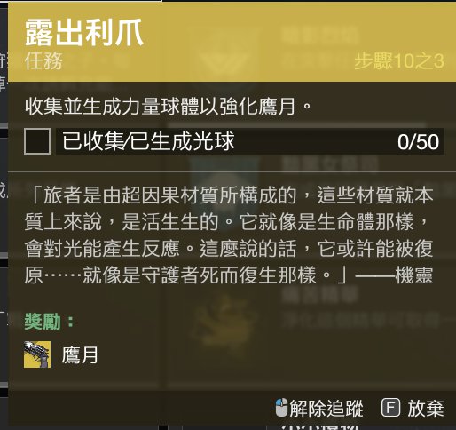 《命运2》鹰月手炮是凌光之刻新增的武器之一,玩家们需要完整一些任务之后才能获得,这个任务流程较长而且比较繁琐,让不少玩家不清楚要怎么做,下面请看玩家“eruku2015”分享的《命运2》鹰月手炮获得方法,希望能为各位玩家带来一些帮助。