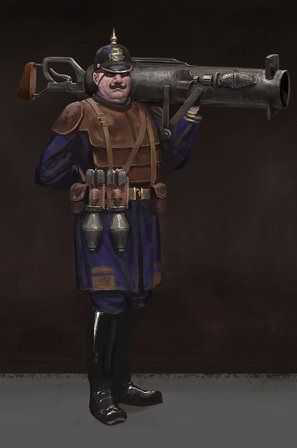 萨克森帝国标准步兵单位,武器是冲锋枪,外形像MP18,射速高,射程中等。冲锋队的设计灵感来自一战后期德国的暴风突击队。