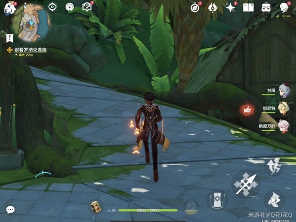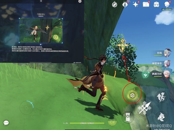 4.如下图新增道具四叶印,看见后右下角操作位置会发亮,就可以传送到道具位置,跑图省力小工具。