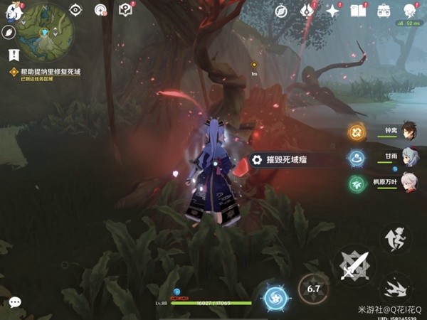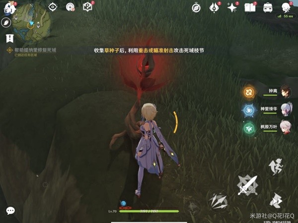 7.中间剧情过完,和提纳里采药,采药后去修复死域,方法就是收集草种子后,利用重击或瞄准射击攻击死域枝节。